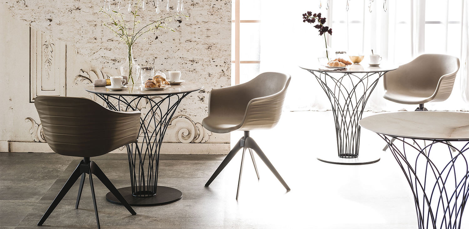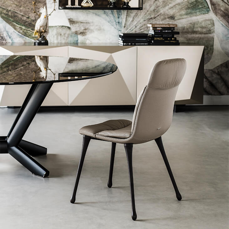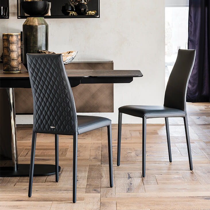 Las sillas tapizadas en piel auténtica o ecopiel también son protagonistas del nuevo catálogo de Cattelan Italia. Modelos como la silla Diana, Wanda, Kelly, Kay Coutoure o el taburete Dumbo, ejemplifican la delicadeza del diseño y el mimo del tapizado.