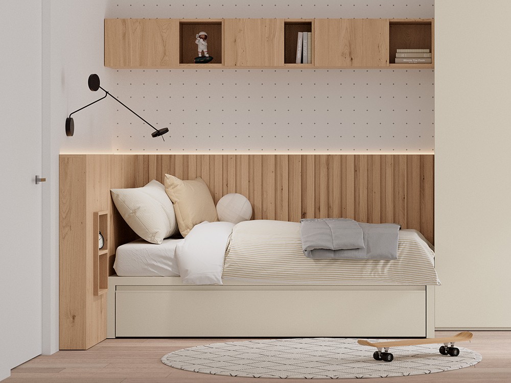 Elegir el tipo de cama adecuada no sólo ayuda a crear una habitación visualmente atractiva, también condiciona cómo se utilizará y vivirá esa estancia en el día a día. Y si la habitación es pequeña, el confort y la sensación de amplitud es aún más valiosa, siendo las camas nido y compactas soluciones inteligentes que pueden transformar un dormitorio en un ambiente más ordenado, funcional, con mayor espacio para el almacenamiento, permitiendo áreas para el descanso, juego, estudio…